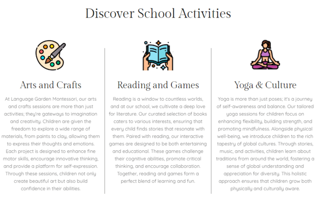 - Insufficient Mandarin Education Content: Crucial details about the school's Mandarin education were inadequately represented on the website, leaving a gap in essential information for potential parents interested in this specialized offering.